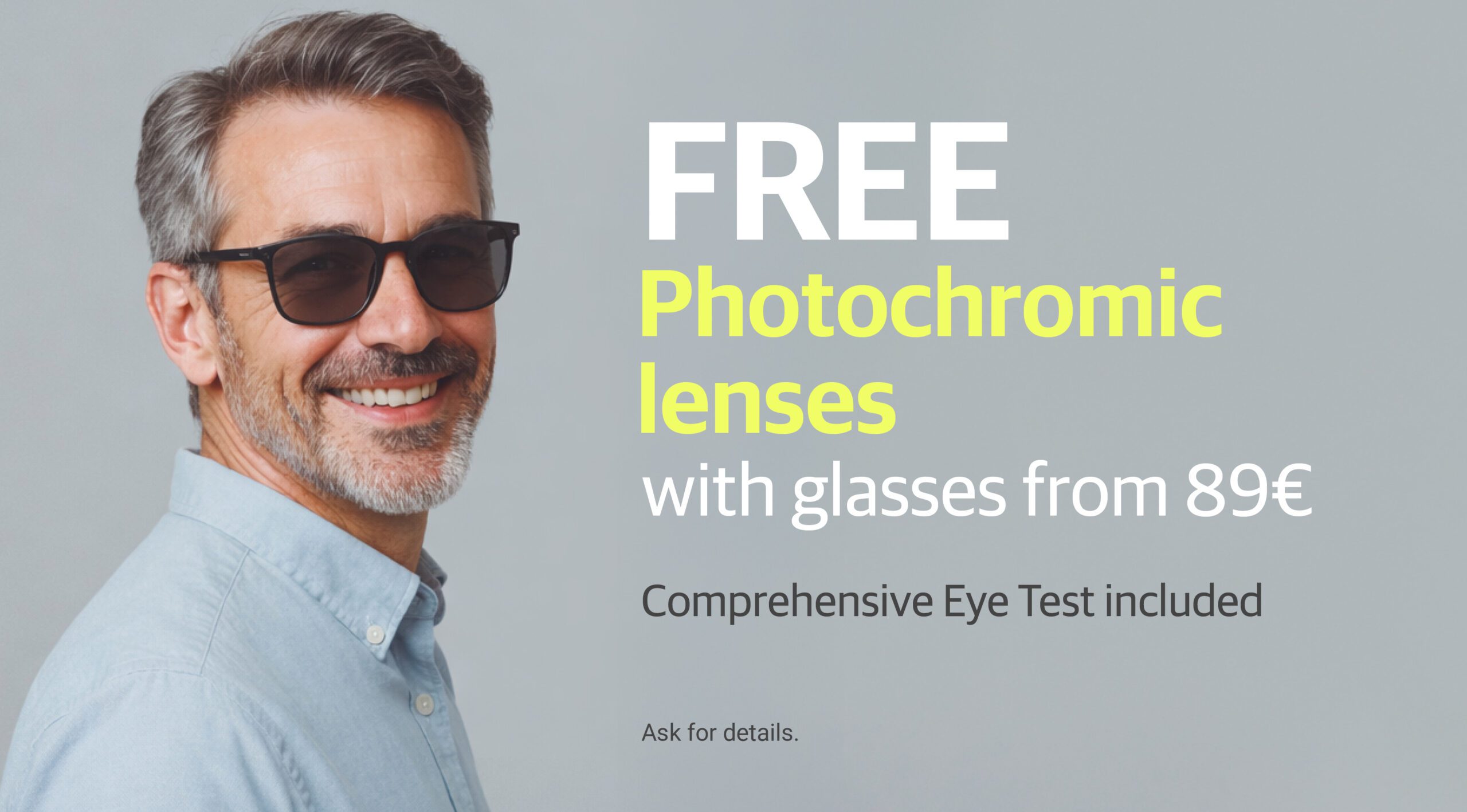 20% off glasses for over 50's: Buy a pair of glasses from our 89€ range or above and get 20% off if you are over 50.